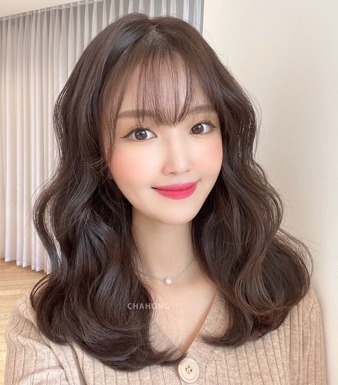 Má bánh bao mà bỏ qua kiểu tóc uốn xoăn sóng thì hơi phí vì đây là kiểu tóc chuẩn chỉnh giúp má trông thon nhỏ hơn, lại còn tăng vẻ mềm mại cho gương mặt. Những lọn tóc xoăn dễ thương không chỉ đem đến bạn vẻ ngọt ngào, quyến rũ đâu mà còn làm tóc trông tơi bồng tự nhiên, có độ dày nhất định, đồng thời cho cảm giác mặt tiền được "nịnh nọt" nên bé đi phần nào.