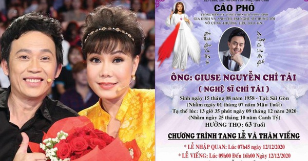 Chiều ngày 10/12, NS Hoài Linh và NS Việt Hương cùng đăng tải cáo phó chính thức của cố nghệ sĩ Chí Tài trên Facebook cá nhân. Theo đó, tang lễ sẽ cử hành tại nhà tang lễ Bộ Quốc phòng số 5 Phạm Ngũ Lão, quận Gò Vấp (TP.HCM) vào 9 giờ đến 16 giờ ngày 12/12. NS Việt Hương cho biết: "Việt Hương được sự cho phép và uỷ quyền của chị Phương Loan, vợ của cố nghệ sĩ Chí Tài, sẽ chịu tang vai em, đại diện và thay mặt gia đình trong tang lễ của anh tại Việt Nam".