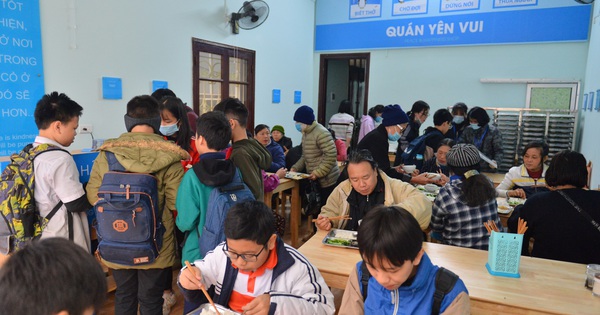 Một số em học sinh cũng tranh thủ đến ăn cơm
