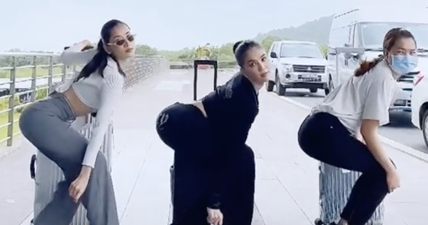 Cụ thể đoạn clip ghi lại hình ảnh ở sân bay trong chuyến du lịch chung của Ngọc Trinh và Chi Pu. Thuý Kiều cũng vào quay TikTok góp vui bằng màn phân biệt giữa cách nhặt đồ của "normal girls" (các cô gái bình thường) và "sexy girls" (những nàng gợi cảm). Quay clip dạng này chính xác là muốn khoe khéo 3 vòng thon gọn đây mà!