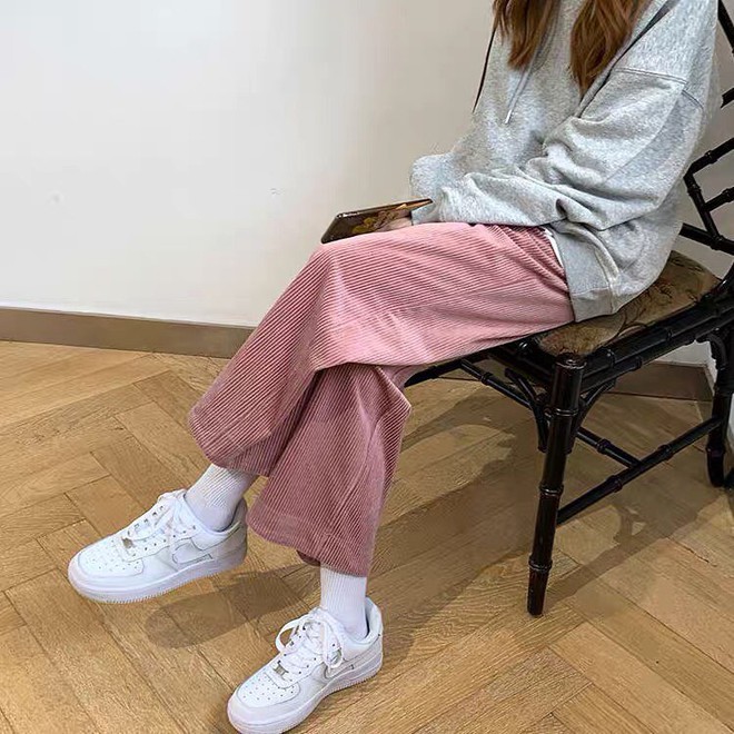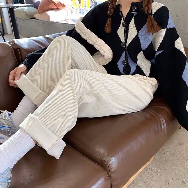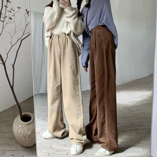 Thường thì khi diện quần nhung tăm, giới trẻ sẽ thích chọn những dáng suông, rộng hay có thêm túi hộp cho xinh. Với item này, bạn có thể mix với đủ các loại áo mà trông đều ổn chứ không sai trái đâu.