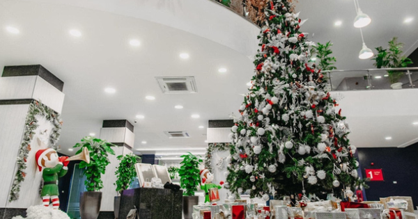 Không chi ở ngoài sân trường được trang trí, mà ở sảnh của toà nhà cũng được đặt một cây thông Neol to đùng làm điểm nhấn