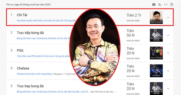 Từ khóa "Chí Tài" tăng vọt vào cuối chiều ngày 9/12