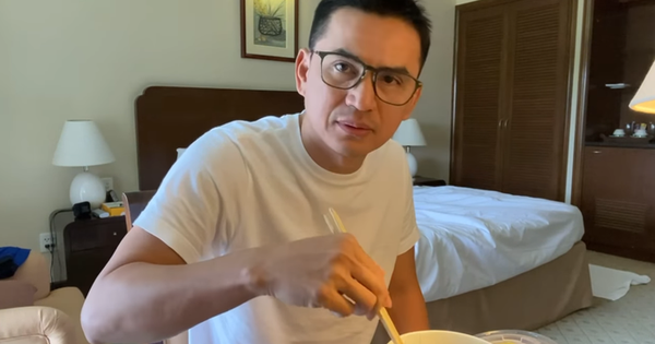 HLV Kiatisuk ăn phở tại Việt Nam khi cách ly.