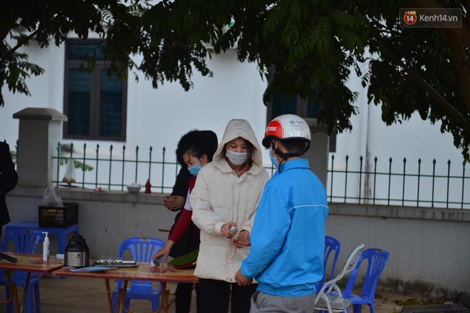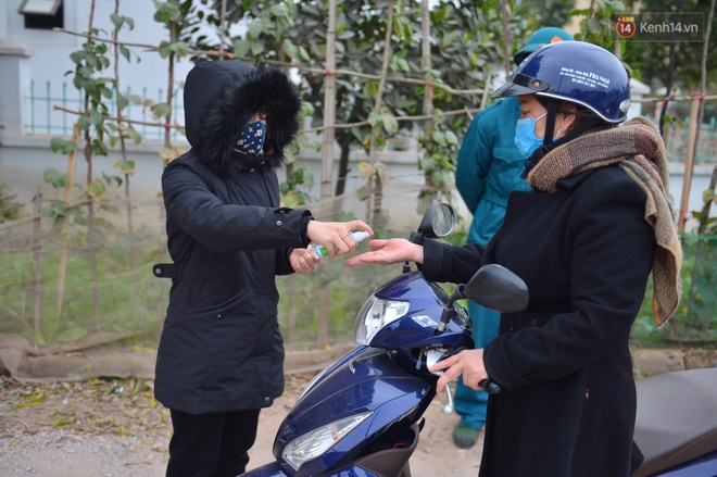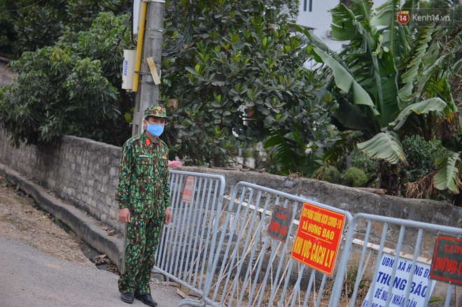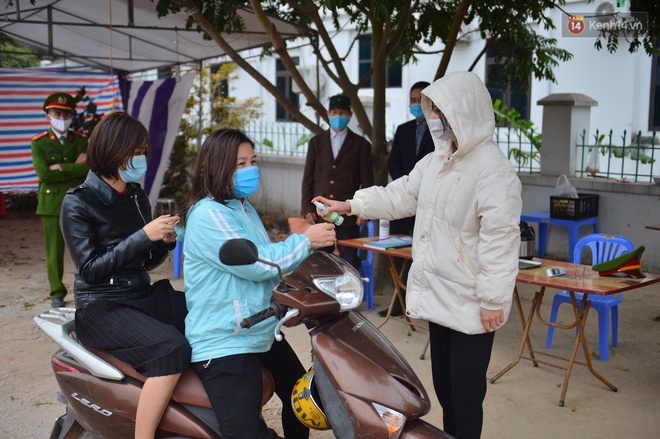 Theo ghi nhận của PV, sáng 28/1, tất cả các con đường ra vào thôn Kim Điền đều bị lực lượng chức năng phong toả. Những người dân di chuyển qua khu vực này đều được lực lượng y tế yêu cầu đeo khẩu trang, đo nhiệt độ và sát khuẩn tay để phòng dịch Covid-19.
