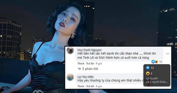 "Tự tin là tốt, nhưng quá lại thành không tốt. Cuộc sống còn dài", '"Xấu nhưng vì có tiền nên mua được tình trẻ", "Hết tiền hết sắc hết danh thì cẩn thận nhé",... netizen nhận xét. Ngay sau đó, Lệ Quyên đã chọn cách phản bác âm thầm, khiến công chúng không khỏi thích thú. Thay vì lên tiếng phản bác, đôi co, Lệ Quyên chỉ liên tục thả biểu cảm "haha" dưới loạt bình luận này. Nhiều người cho rằng hành động này của nữ ca sĩ như muốn mỉa mai ngược lại antifan.