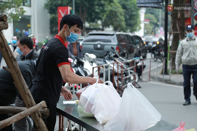 Nhiều người dân đã đặt mua nhu yếu phẩm, lương thực để nhờ người thân vận chuyển đến. Toàn bộ nhu yếu phẩm, lương thực đều được xếp gọn tại bàn phía bên ngoài khu cách ly rồi được lực lượng bảo vệ vận chuyển đến từng hộ gia đình trong khu cách ly.