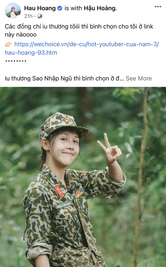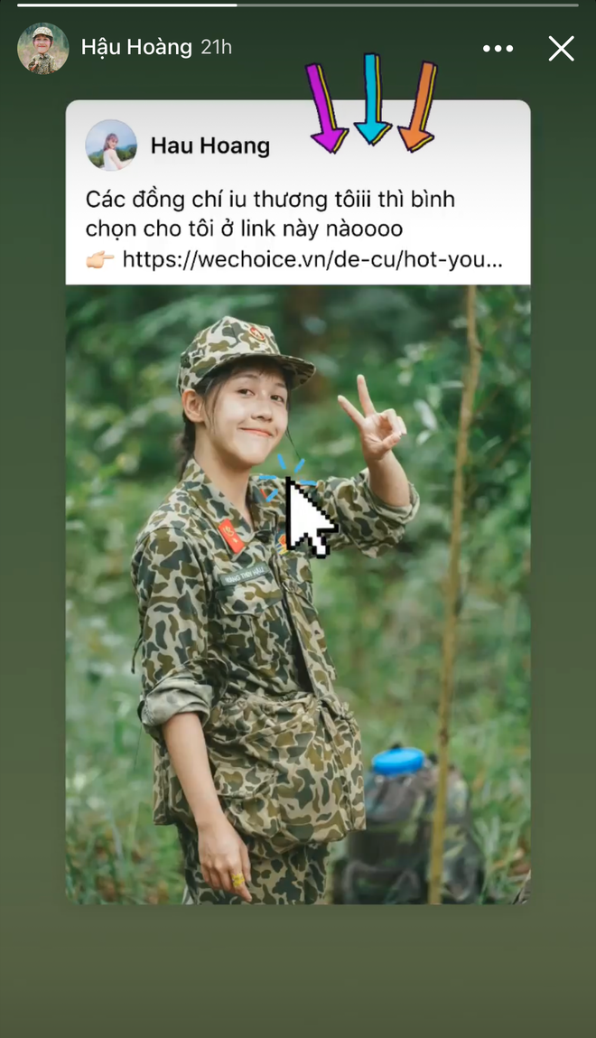 Dù đã có Mũi trưởng Long và hội chị em giúp đỡ nhưng Hậu Hoàng vẫn "tự lực cánh sinh" bằng cách đăng lời hiệu triệu trên fanpage và share nhẹ ở story trang cá nhân