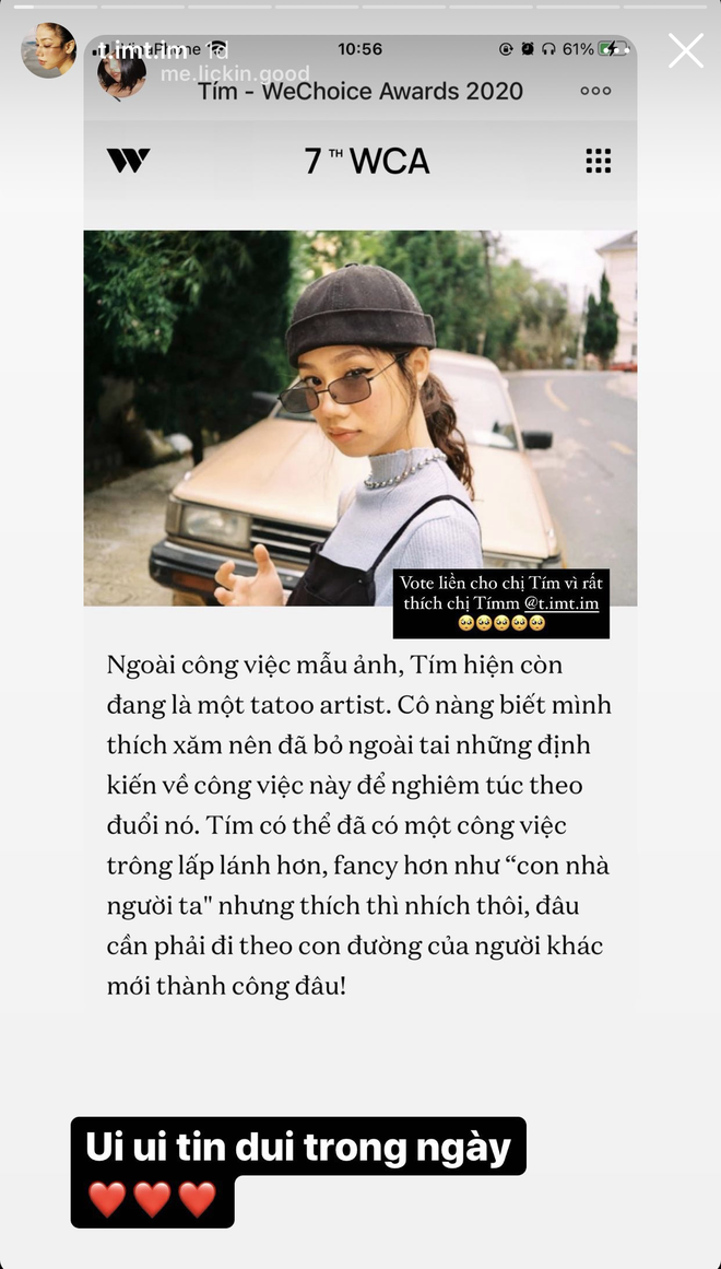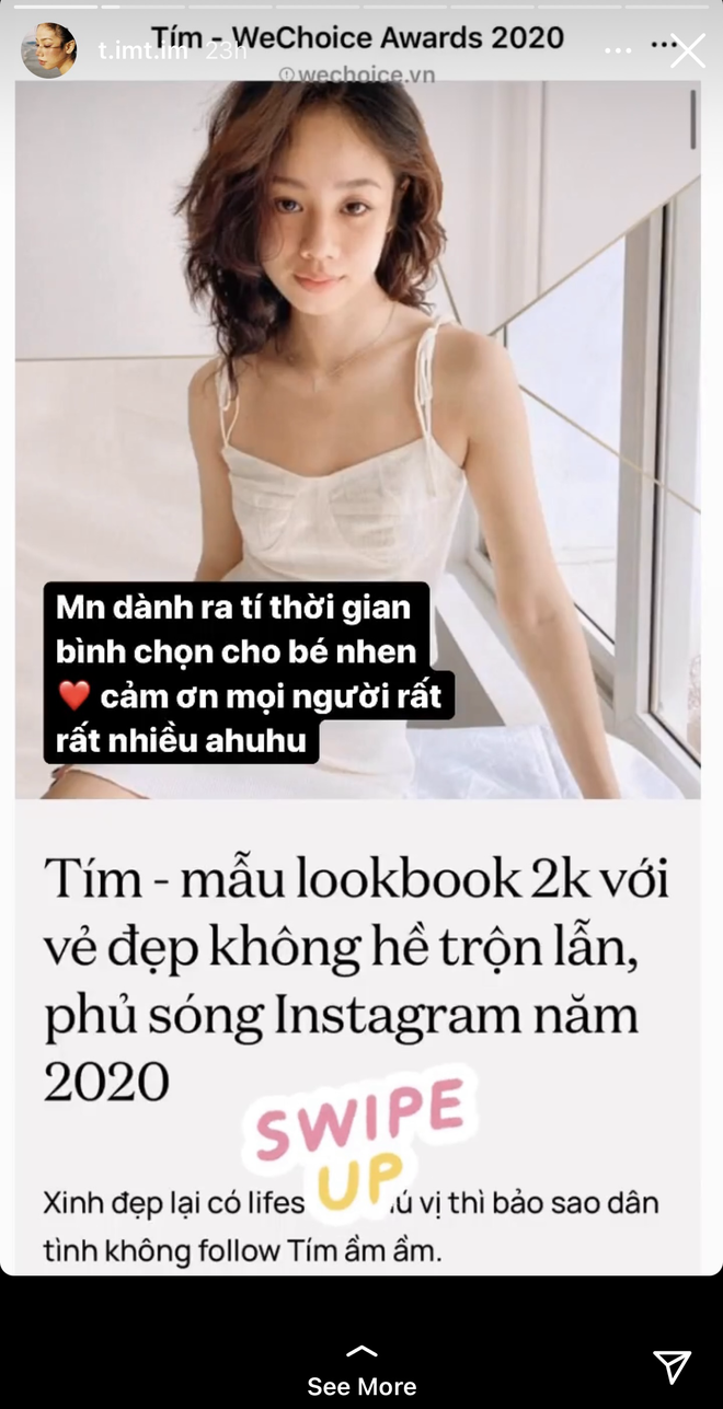 Cô nàng Tím tỏ ra khá bất ngờ khi tên mình xuất hiện trong danh sách đề cử Rising GenZ của WeChoice năm nay nhưng cũng không quên nhờ mọi người giúp đỡ bình chọn