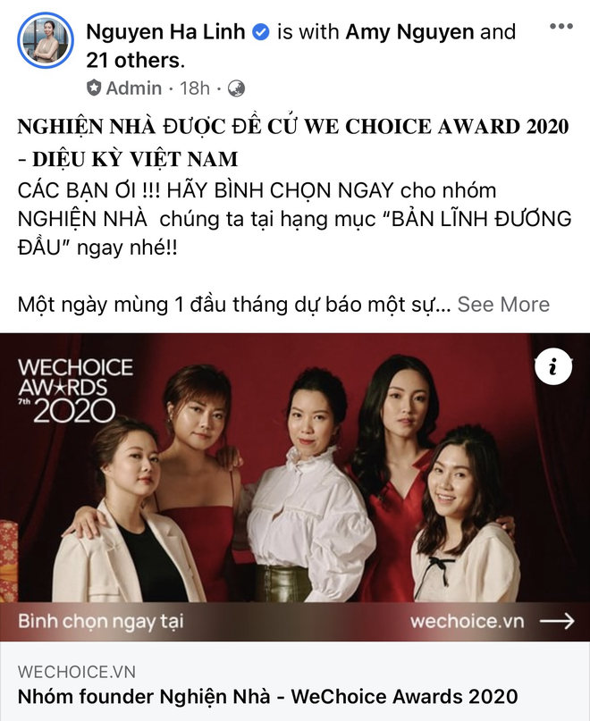 Hội admin Nghiện Nhà thì tận dụng chính chiếc group hơn 1,4 triệu thành viên để thông báo tin vui khi xuất hiện tại WeChoice 2020