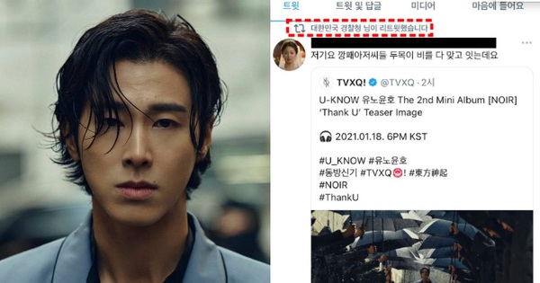 Mới đây, trên tài khoản Twitter chính thức của Cơ quan Cảnh sát Quốc gia Hàn Quốc đã xuất hiện bài đăng có mặt Yunho (DBSK). Bài đăng này đã khiến fan không khỏi ngạc nhiên, bất ngờ và hoang mang. Có chuyện gì mà Yunho lên hẳn Twitter của Cơ quan Cảnh sát?