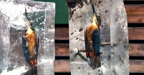 Với sự cho phép của Ủy ban bảo tồn thiên nhiên cao cấp, những kiểm lâm đã cố gắng cưa khối băng để đưa thi thể con chim bói cá bên trong ra. Giám đốc kiểm lâm địa phương, ông Peter Proebstle, cho biết ông cũng vô cùng ngạc nhiên vì chưa bao giờ chứng kiến cảnh tượng kỳ lạ như vậy.