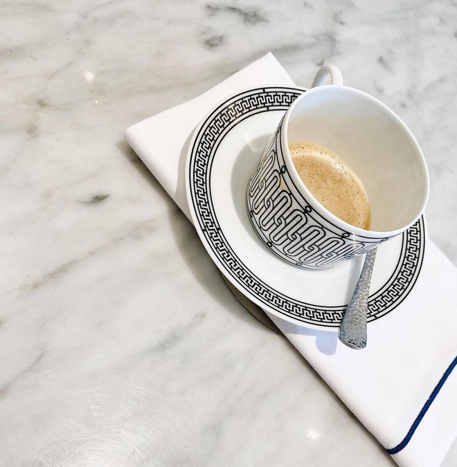 Với hình ảnh họa tiết lấy cảm hứng từ các cửa hàng ở Paris, dòng ly này có hình chữ HH cách điệu kết hợp cùng những hình xoắn ốc phức tạp. Heart Evangelista sở hữu 2 bộ ly đĩa uống cafe có giá khoảng 3,6 triệu/bộ.