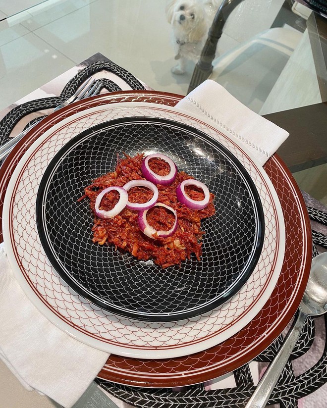 Bộ bát đĩa mang tông đỏ và họa tiết nổi bật gợi nhớ đến vùng thị trấn Andalucia. Bộ bát đĩa này có giá khoảng 20 triệu/bộ Và Heart Evangelista có ít nhất 4 bộ bát đĩa như vây.