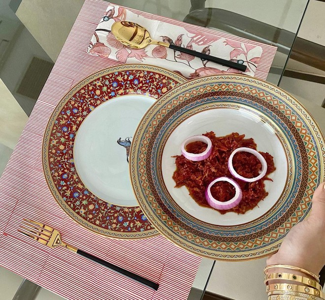 Ngoài ra cô còn sở hữu bộ bát đĩa ăn tối cùng bộ sưu tập có giá khoảng 10 triệu/bộ. Và cô có ít nhất khoảng 4 bộ như vậy.