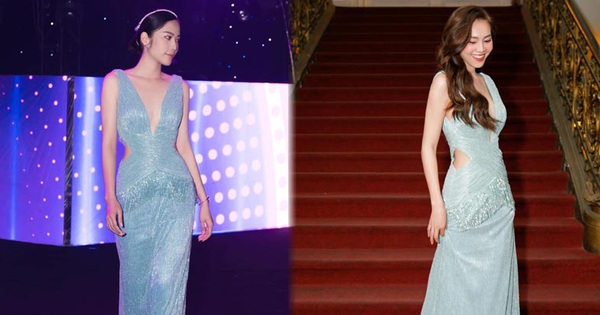Xuất hiện ở hai sự kiện khác nhau, Lan Ngọc và Nam Em có chung ý tưởng lên đồ khi diện cùng một kiểu váy. Bộ cánh làm nên duyên phận đụng hàng cho cả 2 vốn có kiểu dáng xẻ ngực gợi cảm và chi tiết cắt khoét hai bên hông. Công bằng mà nói, nếu không sở hữu một body thon thả, mảnh mai thì khi diện chiếc váy này, bạn sẽ dễ tiến thẳng đến ô mất điểm lắm. Tuy nhiên, cả Lan Ngọc, Nam Em đều toát lên vẻ gợi cảm riêng, không ai nhường ai cả.