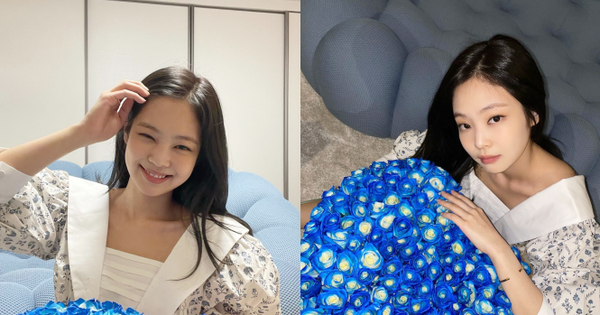 Khoảnh khắc "cưng xỉu" khoe trọn đường nét khuôn mặt của Jennie cùng bó hoa hồng xanh "siêu to khổng lồ"
