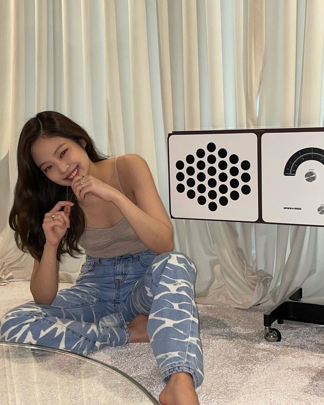 Áo dây mát mẻ, quần bò loang trắng cá tính, ai nhìn Jennie lại tưởng cô nàng đang tận hưởng mùa hè ấy chứ