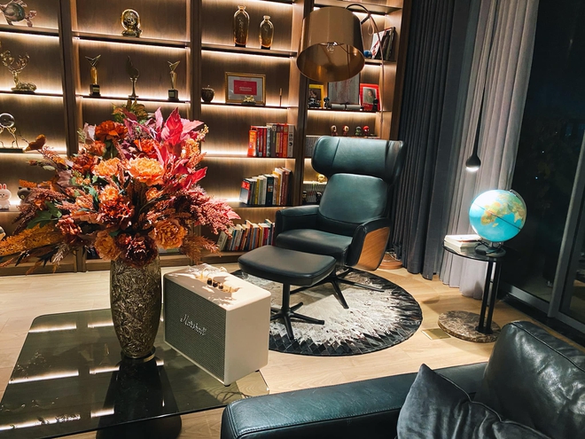 Toàn bộ penthouse đều được lót sàn gỗ để tạo sự sang trọng và ấm cúng. Trong phòng khách có 1 tủ gỗ lớn trưng bày nhiều vật lưu niệm, trang trí của nam MC. Được biết, hầu hết các nội thất đều được anh đặt mua từ nước ngoài. Khu ăn uống được bố trí bàn ăn rộng. Khu bếp gọn gàng và chỉ bài trí những vật dụng cần thiết, thông với khu nhà ăn có quầy rượu đẳng cấp.
