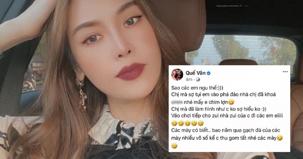 Trưa ngày 25/1, Quế Vân tiếp tục đăng status mới đáp trả "làn sóng" chỉ trích của cộng đồng mạng giữa drama liên quan đến Sơn Tùng. Viết trên Facebook cá nhân, nữ diễn viên thể hiện thái độ cực gắt, thách thức: "Chị mà sợ tụi em vào phá đảo nhà chị đã khoá nhé mấy em chim lợn. Chị mà đã làm hình như chị không sợ hiểu không. Vào chơi tiếp cho vui nhà vui cửa chị đi các em ơi".