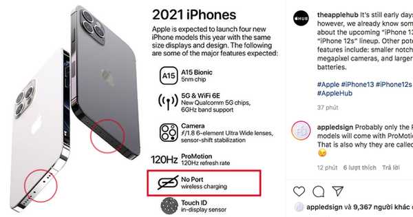 Theo đó, trang tin này tiết lộ rằng "Tuy vẫn còn hơi sớm nhưng chúng ta đã biết một số chi tiết về 'iPhone 13' hoặc 'iPhone 12s' sẽ được ra mắt trong thời gian sắp tới. Các tính năng mới bao gồm: tai thỏ nhỏ hơn, camera megapixel cao hơn và pin lớn hơn". Ngoài ra, từ hình ảnh chúng ta có thể nhận thấy thế hệ iPhone mới này sẽ có tần số quét màn hình lên tới 120Hz, touch ID... và điều đặc biệt gây xôn xao cộng đồng mạng là dòng sản phẩm mới này không còn cổng sạc lightning.