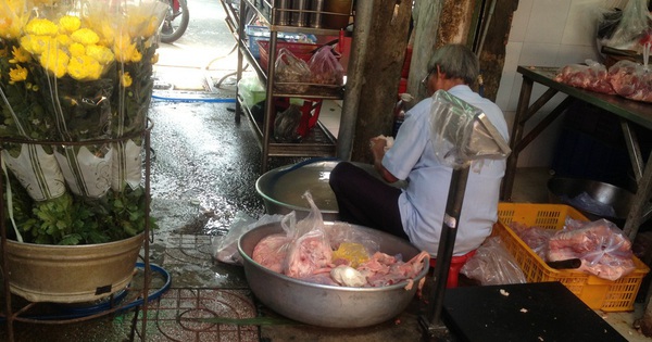 Sơ chế thịt heo ngay dưới nền đất