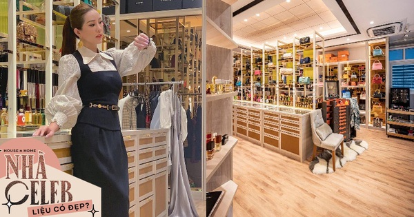 Nhưng đáng chú ý nhất vẫn là căn phòng chứa toàn hàng hiệu xa xỉ mà Hoa hậu Thu Hoài sở hữu. Bên trong căn phòng siêu rộng là các kệ tủ gỗ lắp gương sáng loáng với đèn vàng toát lên nét đẳng cấp, "chanh sả".