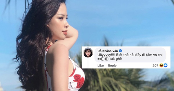 Mới đây, khi Dương Hoàng Yến đăng tải bức ảnh body "bốc lửa", Khánh Vân lại vào thả bình luận tiếc hùi hụi: "Biết thế hồi đấy đi tắm với chị, tức ghê".