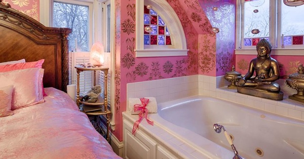 Fan của màu hồng có lẽ sẽ thích căn phòng này, nếu như giường và bồn tắm không cách nhau một gang tay như thế kia.