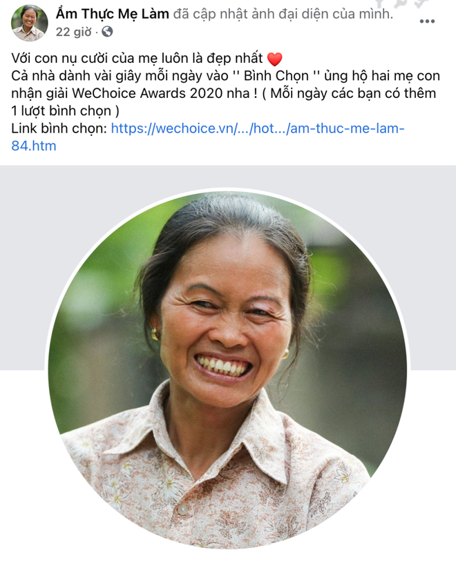Riêng kênh Ẩm Thực Mẹ Làm, hai mẹ con đang rất hào hứng kêu gọi mọi người vote cho mình trên Fanpage và không ngại bày tỏ ý định muốn được lên thành phố nhận giải.