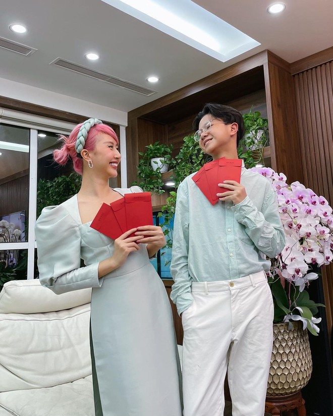 Như thường lệ hàng năm, Tiên Nguyễn lại mặc áo dài đón giao thừa cùng với gia đình.