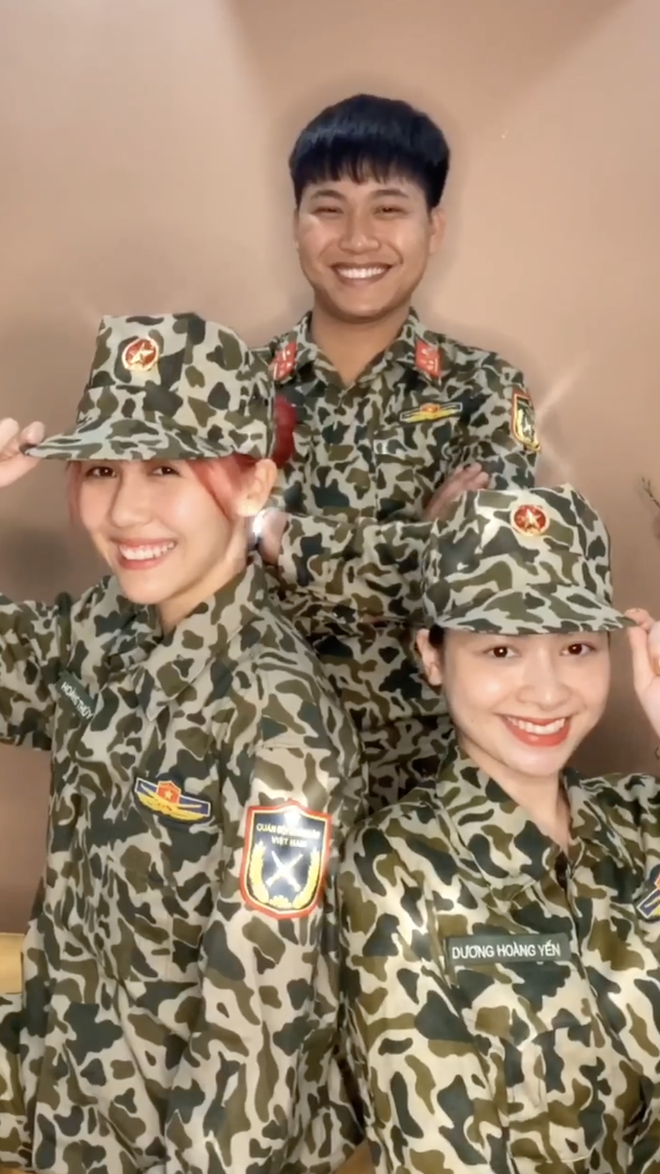 Chuyện là cách đây ít giờ, đồng chí Thúy Hậu có update một bài đăng mới trên Facebook. Bài đăng là một video theo trend biến hình với sự tham gia của Hậu Hoàng, Mũi trưởng Long và có cả ca sĩ Dương Hoàng Yến nữa. Cả ba đã có màn lột xác theo nhạc từ trang phục bình thường sang trang phục quân nhân cực ngầu.