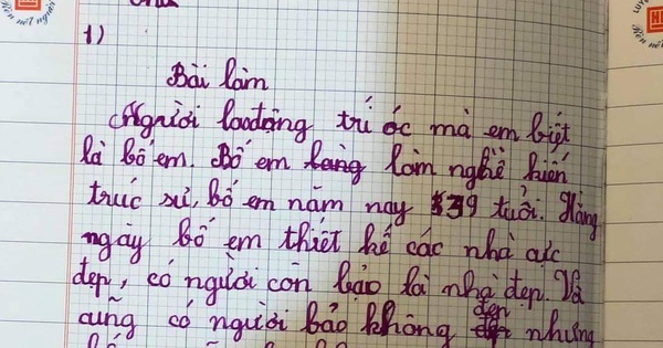 Những câu đầu, cô bé viết khá gãy gọn như dẫn được bố là người lao động trí óc, làm kiến trúc sư và 39 tuổi. Ở phần sau, học sinh này bộc lộ ngay tính thật thà của mình khi viết: "Hằng ngày bố em thiết kế nhà cực đẹp, có người còn bảo là nhà đẹp, và cũng có người bảo không đẹp nhưng không sao."