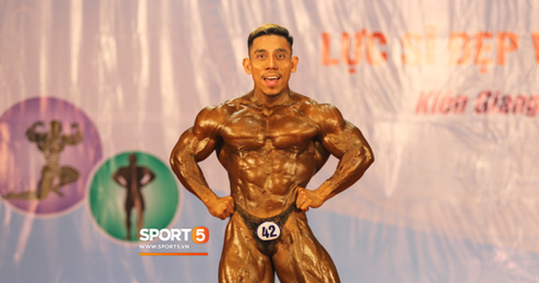 VĐV Phạm Văn Mách trên sàn trình diễn thể hình VĐQG 2020 (Ảnh: Mạnh Đăng)