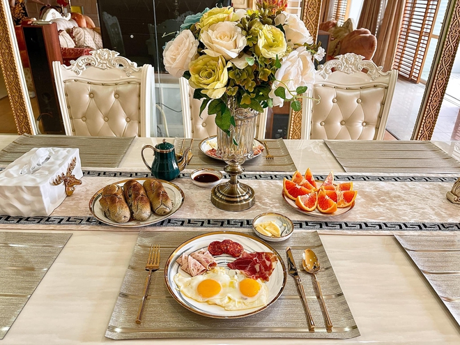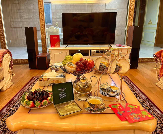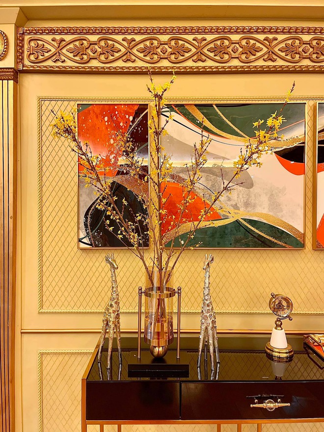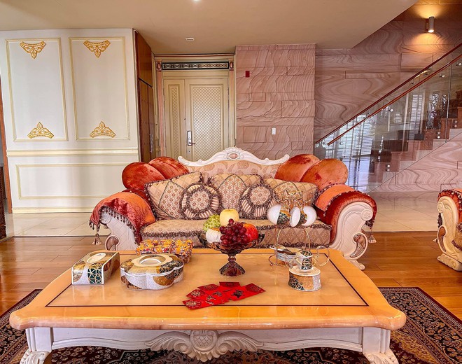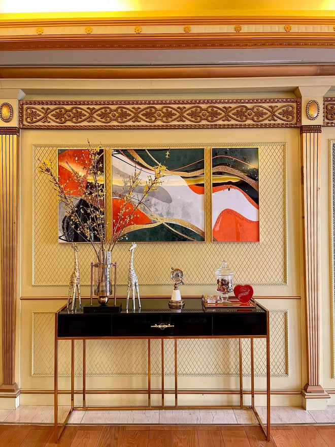 Nhà có tông vàng - trắng chủ đạo nên tạo cảm giác sang trọng chẳng thua kém biệt thự. Nhiều chi tiết trong nhà nhìn như được dát vàng cho thấy sự kỳ công của chủ nhân. Đặc biệt, trong nhà có nhiều khu tiếp khách với phong cách đa dạng từ châu Á đến châu Âu.