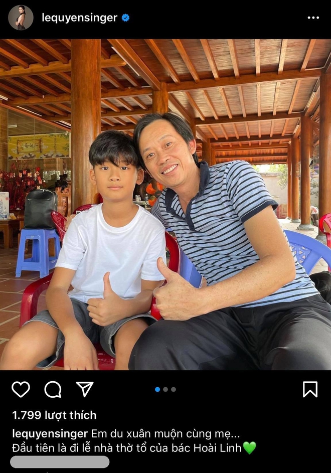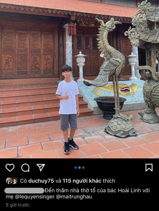 Không dừng lại ở việc theo dõi con riêng của Lệ Quyên, Lâm Bảo Châu còn thả tim cho cậu bé. Cụ thể là trong hình ảnh mới nhất của Kỳ Anh, khi thiếu gia này đến thăm nhà thờ Tổ của Hoài Linh cùng với mẹ chiều nay (23/2).