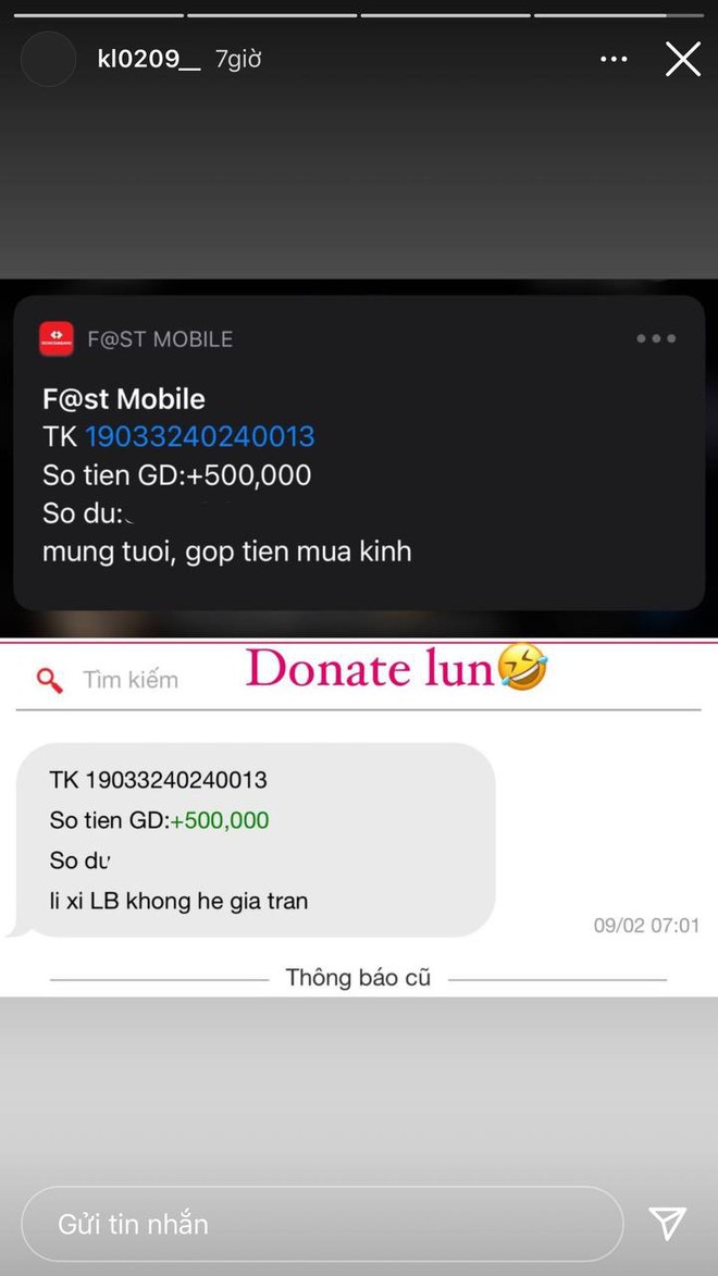 Những khoảnh khắc đầu tiên của ngày mùng 1 Tết, Nhật Lê - bồ cũ Quang Hải đã khoe nhận được lì xì là số tiền chuyển khoản sương sương từ bạn bè. Chẳng biết con số thực sự là bao nhiêu nhưng nhìn vào cách mà bạn thân nhà người ta lì xì cho nhau, dân tình cũng ao ước được như vậy.