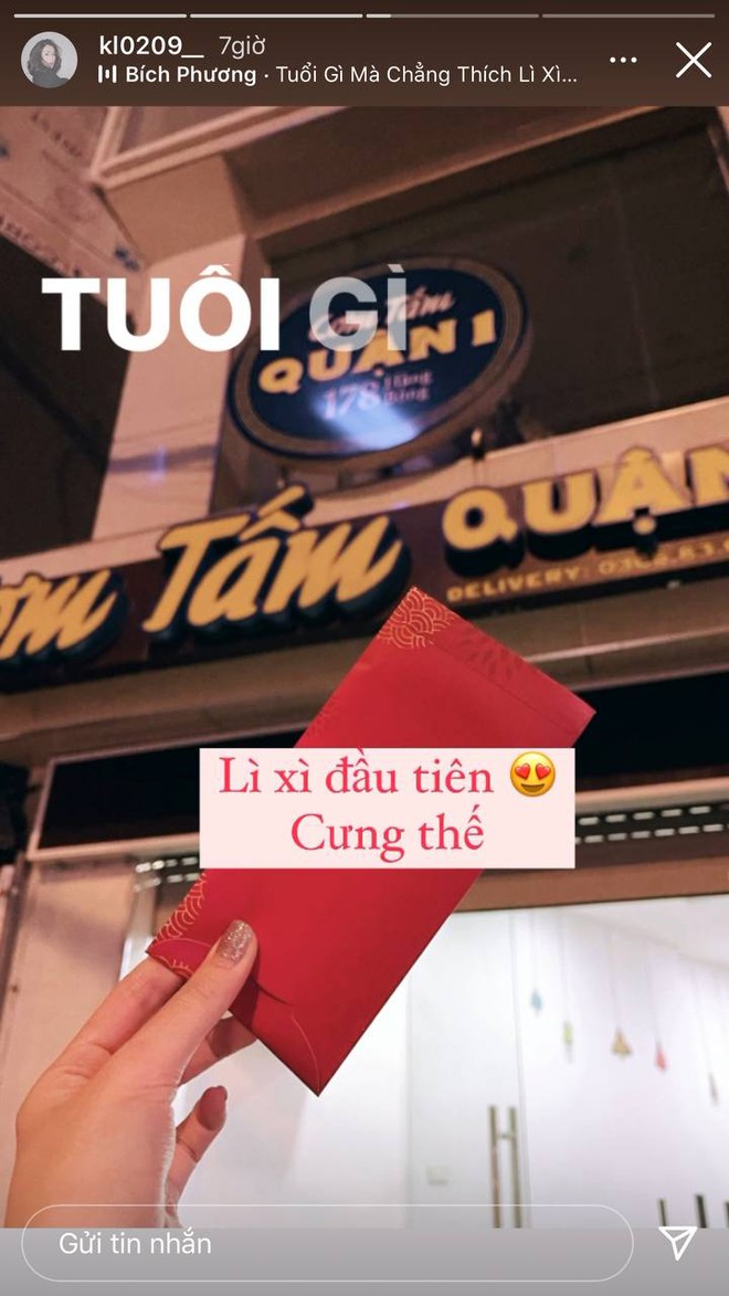 Vừa được nhận tiền lì xì từ mẹ là cô nàng Huỳnh Anh háo hức khoe ngay, cô nàng còn chia sẻ việc mình hợp tuổi nên được cho xông đất ngày đầu năm.