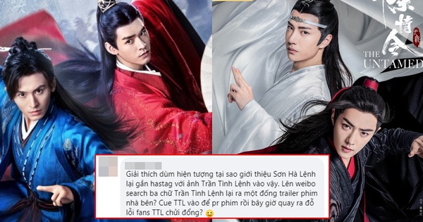 - Giải thích giùm tại sao giới thiệu Sơn Hà Lệnh lại gắn hashtag với ảnh Trần Tình Lệnh vào vậy? Lên Weibo tìm 3 chữ Trần Tình Lệnh lại ra một đống trailer phim nhà bên? Lôi Trần Tình Lệnh vào để PR phim rồi bây giờ quay ra đổ lỗi fan Trần Tình Lệnh chửi đổng?