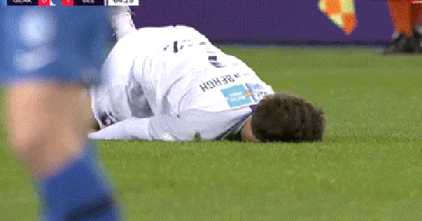 Lập siêu phẩm, anh chàng cầu thủ lăn ra sân quằn quại như sâu đo