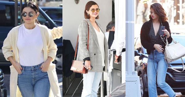Selena Gomez một lần nữa chứng minh rằng đôi khi chẳng cần cầu kỳ, bạn cứ mix áo thun trắng với quần jeans là thế nào cũng có set đồ đẹp. Hãy sơ vin để tạo sự chỉn chu và khoác ngoài cardigan giúp tăng thêm độ sành điệu, đồng thời giữ ấm tốt nhé. Cuối cùng, những điểm nhấn như khuyên tai tròn to bản, kính mắt cũng chính là những yếu tố giúp vẻ ngoài của Selena thêm phần sang xịn