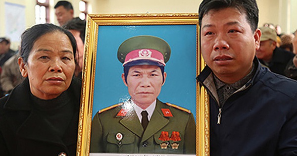 Vợ con ôm di ảnh ông Sường trong buổi công khai xin lỗi, năm 2018