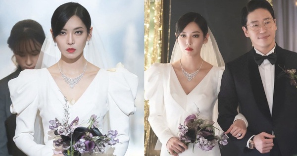Quả nhiên là cặp đôi mưu mô, đến với nhau vì những toan tính nên không giống người bình thường tươi cười rạng rỡ trong ngày trọng đại, "cô giáo" Kim So Yeon mặc váy cưới mà mặt hằm hằm như... sát thủ. Thế nhưng nhan sắc đẹp sắc sảo, sang chảnh và quyến rũ của nữ diễn viên Kim So Yeon vẫn đủ sức làm fan "ngất lịm". Diện lên mình chiếc váy trắng sang trọng, đôi môi đỏ sexy ngút trời, ánh mắt lạnh lùng của "ác nữ" khiến dân mạng cười bò, nhưng phải thốt lên rằng mặt Kim So Yeon như đâm lê nhưng nhan sắc đúng là không còn gì để chê.
