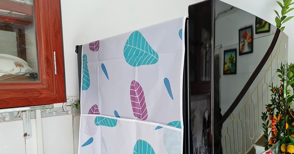 Tuy nhiên, khi phủ lên tủ lạnh thì lại khác. Chị em nào dùng tủ cỡ nhỏ, vỏ màu sáng thì trông còn hợp lý, chứ tủ vừa to vừa đen như của chúng tôi thì trông cứ "sai sai" thế nào ấy nhỉ? Không những thế, trên nóc tủ mà có phần gồ lên thì lại càng khó phủ hơn, và đặc biệt quan trọng là phải có vật nặng nào đó chặn ở trên kẻo tấm vải rơi xuống đất lúc nào không hay.