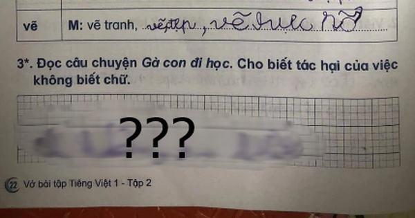 Chưa hết, ở phía dưới khi được yêu cầu: "Đọc câu chuyện Gà con đi học. Cho biết tác hại của việc không biết chữ", cậu nam sinh trả lời thẳng tưng: "Thì không đọc được".