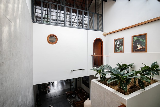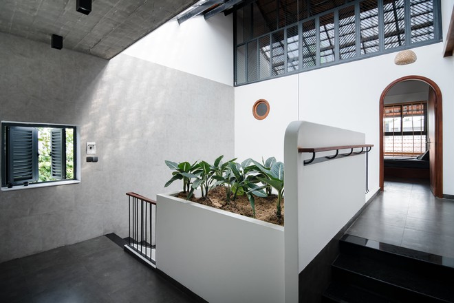 Điểm nổi bật của căn nhà này là chú trọng vào khả năng lấy sáng và lấy gió. Tất cả các phòng đều có đủ sáng nên ban ngày hầu như không cần bật điện. Đặc biệt là nhà rất mát nhờ thiết kế các ô thông tầng, ở giữa nhà có hẳn 1 ô thông tầng lớn. Ngoài ra, nhà còn có mái ngói lấy sáng, giúp ánh sáng luôn chan hòa và đối lưu không khí bên trong tốt hơn.