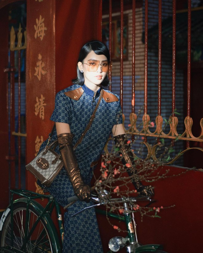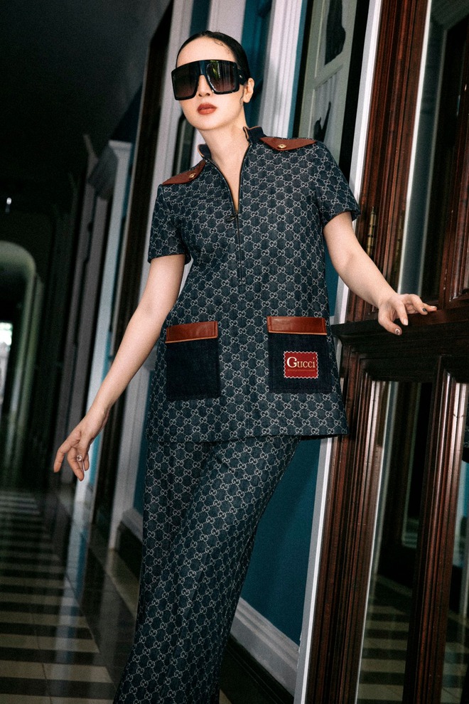 Nhưng nhờ Giáng My, chúng ta lần nữa thấm thía không phải cứ diện đồ hiệu là đẹp và sang. Hãy nhìn bím tóc đuôi sam không hề giả trân, đôi kính râm to choán gần hết mặt cùng cách pose dáng từ những bộ lịch xưa xửa để thấy Giáng My đã "fail" thế nào.