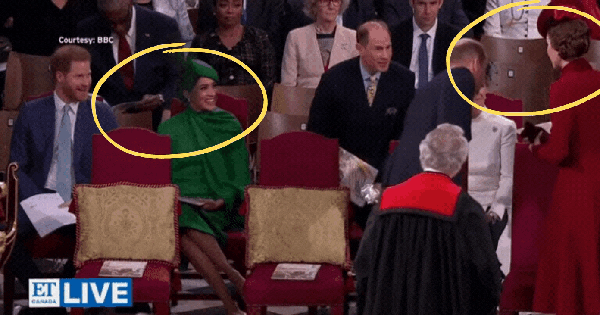 Trong video quay lại có thể thấy, Nhà Sussex bước vào trong trước vợ chồng William - Kate. Trong khi Harry - Meghan chào William - Kate bằng câu 'hello' (xin chào) khá gượng gạo, nữ Công tước xứ Cambridge thì gần như "phớt lờ" nhà em chồng. Meghan dường như cố gắng tránh sự khó xử bằng cách chào chị dâu thật nhanh để chuyển qua chào Hoàng tử William, điều này có thể nhìn thấy trong ánh mắt cô nàng.