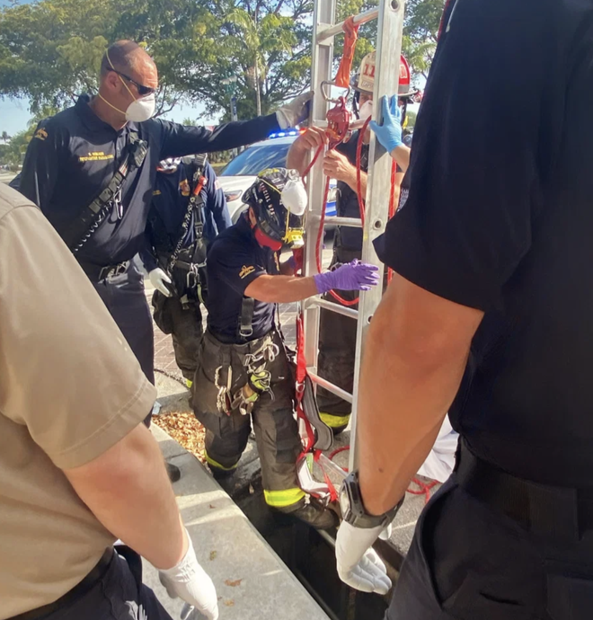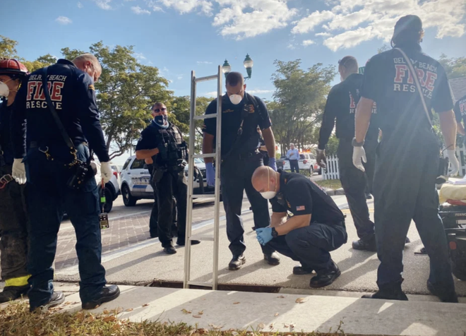 Lực lượng chức năng Florida đã tiến hành cứu nạn nhân lên từ 1 cái cống bên vỉa hè ở bãi biển Delray hôm 23/3 vừa qua