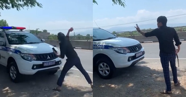Theo đoạn clip được ghi lại, thanh niên này liên tục nhặt đá bên đường rồi ném vào xe của CSGT làm rạn kính trước. Sau đó, thanh niên này 1 tay cầm cây gậy, 1 tay cầm điện thoại quay rồi hung hăng thách thức lực lượng chức năng. Không ít người dân bên đường chứng kiến vụ việc đã khuyên nhủ bình tĩnh giải quyết "có gì từ từ nói". Tuy nhiên, thanh niên này vẫn tiếp tục chửi bới, la hét, cầm gậy đe dọa CSGT.